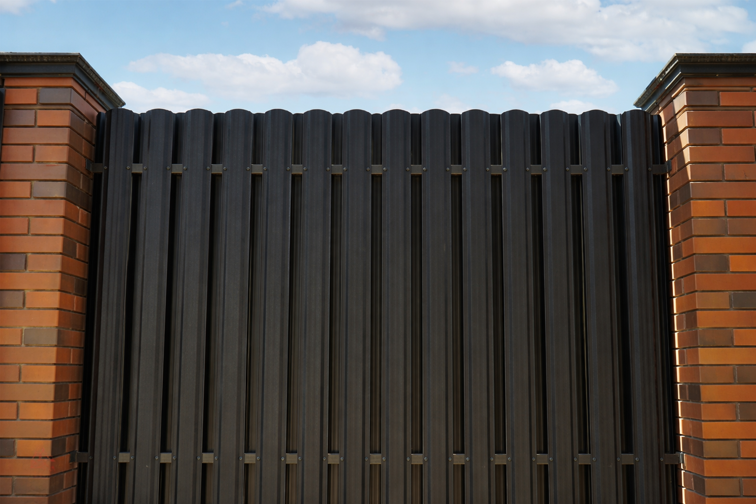 Мы используем только качественную оцинкованную сталь с полимерным покрытием (глянец, матовый, текстура дерева). У нас можно заказать материалы любой нужной высоты. Особой популярностью пользуется евроштакетник двухсторонний — при монтаже в шахматном порядке (шахматка) он полностью скрывает участок от посторонних глаз с улицы, но пропускает свет и не создает парникового эффекта для растений.